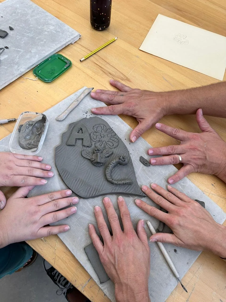 My current workplace, ASD, hosts periodic well-being sessions for staff throughout the year, with a variety on offer from fitness sessions, spots matches, cooking. This week myself and colleague, Sandy Carden, hosted a session inviting ASD staff to make ceramic tiles, kicking off a large scale mural project! Over twenty teachers, administrators, and staff joined us to create the first few pieces of what will be an ongoing project.