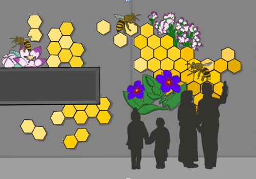 The mural will be housed outside of the Bee Garden, and permanently mounted to the wall- at a distance it shows the images of honeycomb, bees, and UAE native plants, yet up close each tile will be uniquely designed by members of the Elementary, Middle, and High School as well as ASD staff.