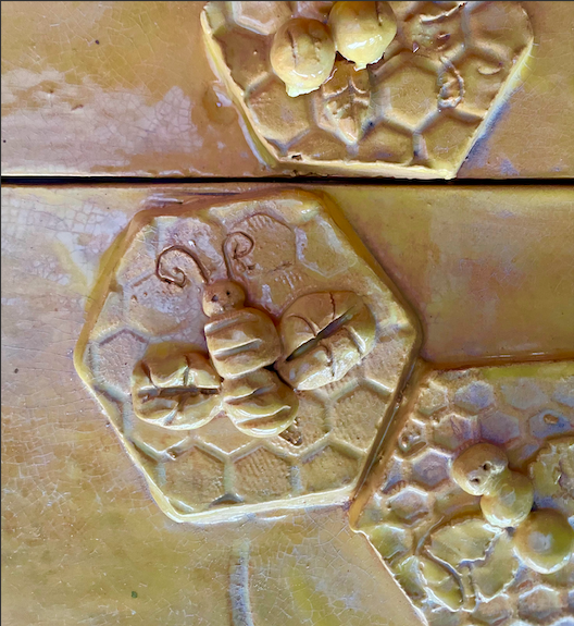 A few of many charming little bees that adorn the large hexagonal tiles.