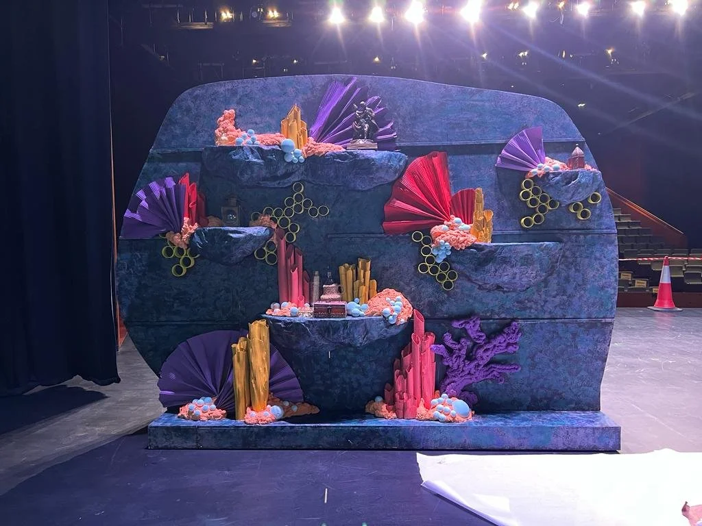 This year’s musical was an iteration of the Little Mermaid, and wow… was it an undertaking! Unlike last year’s musical, Chicago, where there was one main set element/setting, and a few additional embellishments, this years production featured three major setting changes (underwater, inside the palace, and on the sea) which required a lot of set elements to “set” these three distinct locations.
